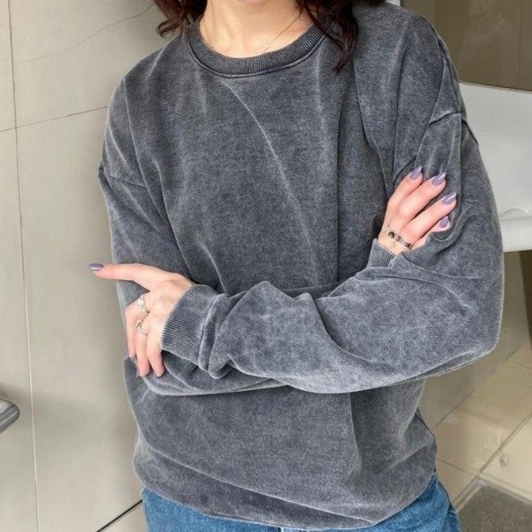 Confeccionado en algodón frisado con efecto lavado acid wash.